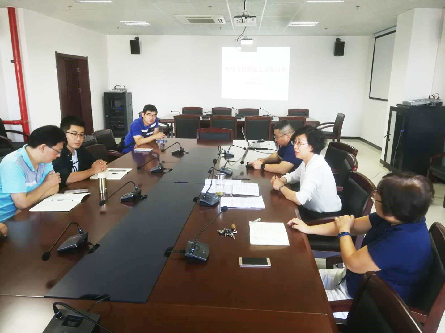 9月3日下午,我院在曲江校区综合教学实验楼1211会议室召开工会委员会工作会议,院党委书记李虹、院长贾嵘、院工会主席伍文俊参加会议。