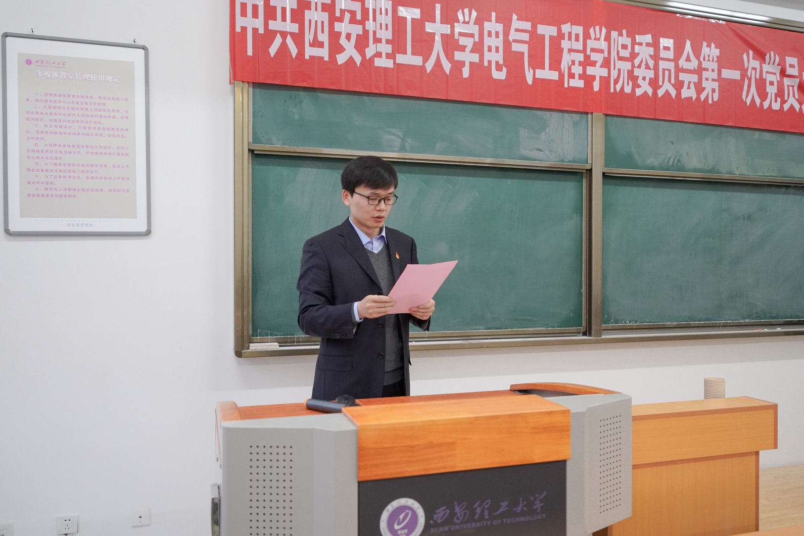 2020年11月18日下午,中共西安理工大学电气工程学院第一次党员大会在曲江综合南楼215室顺利召开。校党委组织部副部长张文科、电气工程学院党员参加了大会。大会由学院副院长王林同志主持。