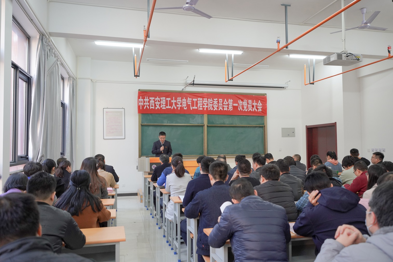 电气工程学院第一次党员大会是在电气工程学院发展进入关键时期召开的一次十分重要的会议。大会号召全体共产党员和广大师生,在学院党委的领导下,秉承“艰苦奋斗,自强不息”的学校精神,坚持和完善以立德树人为根本任务,以提高教育教学质量为主题,团结进取,砥砺奋进,为把电气工程学院建设成为学校的大院、强院而不懈奋斗。