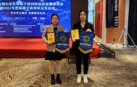 蒋超璐与雷晨两位同学代表电气工程学院获奖团队前往现场领奖,并参加了等离子体学科交叉论坛。