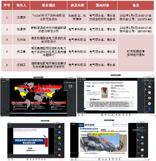 为丰富学院研究生的科技活动,训练研生的科研能力,学院组织“电气云讲堂”、“禾望电气·名师高徒”等系列学术报告,内容包含科技前沿、科学精神与学术诚信等。同时,这一举措也得到了学院各位老师的积极响应,具体如下: