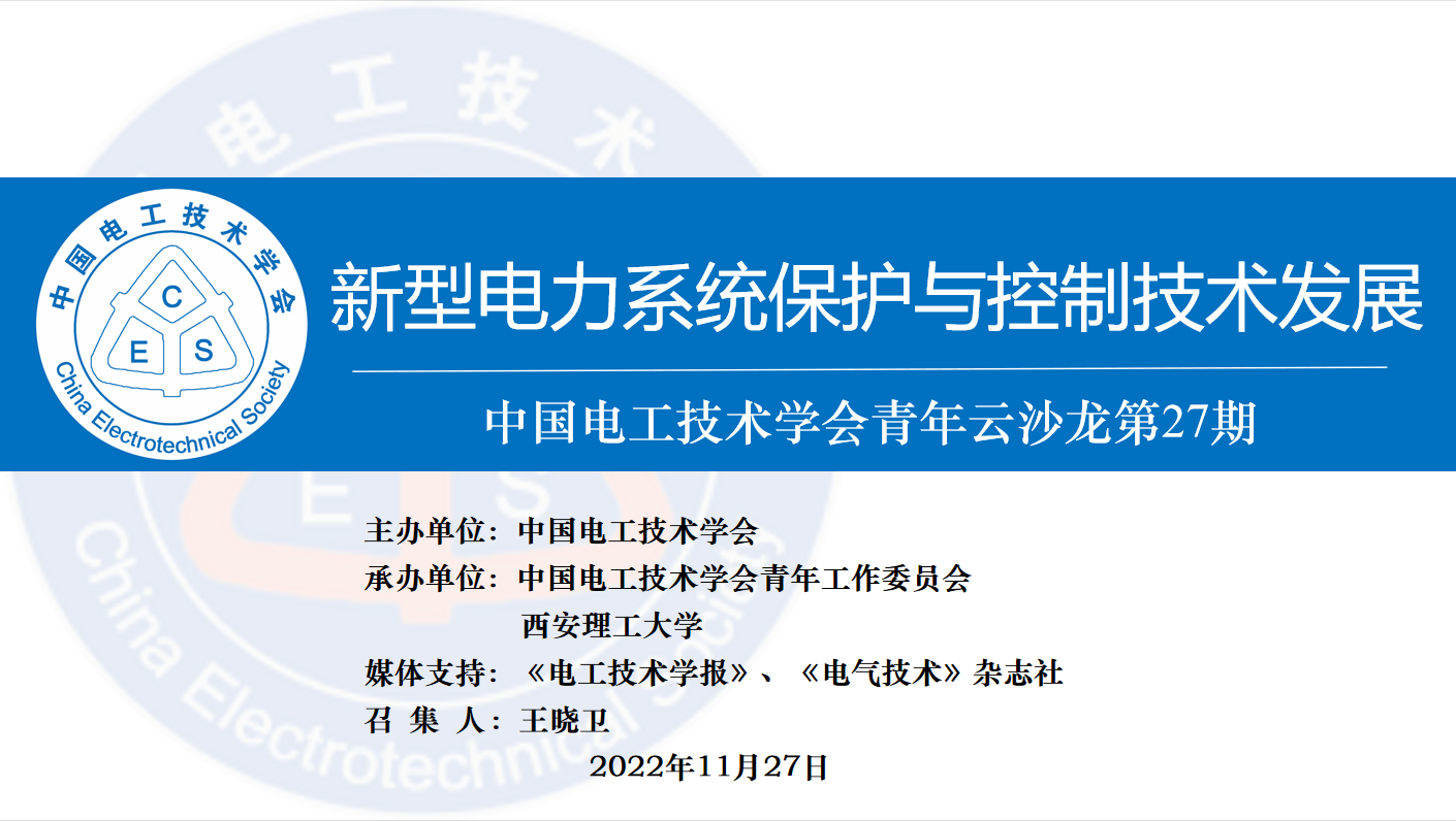 本期青年云沙龙主题为“新型电力系统保护与控制技术发展”,在高比例可再生能源、电力电子装备大规模接入电网的背景下,传统电网发生了根本性变革,共同讨论“双高”下的新型电力系统保护与控制新技术,就保护与控制领域的应用瓶颈以及未来发展展开讨论,指引学术方向,展望行业未来。