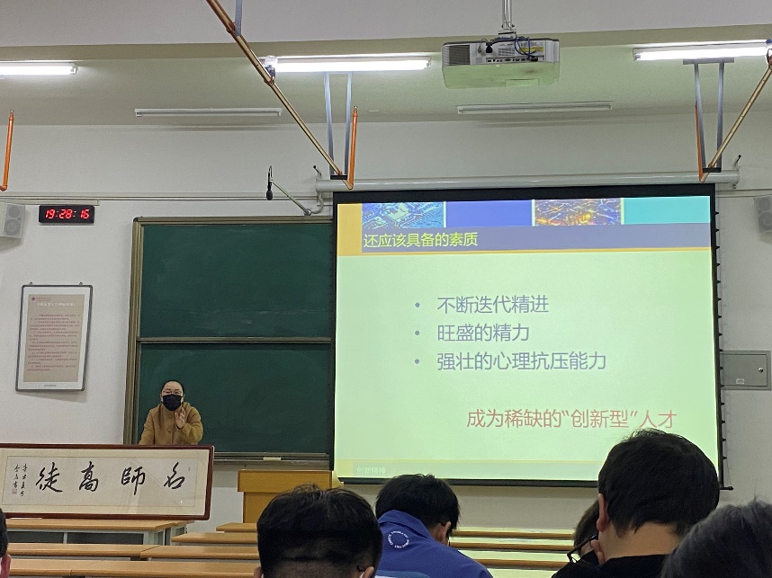 李洁老师以“‘创新精神’正确打开‘研途’的金钥匙”为题,开门见山,强调创新能力的重要性,从国家战略和社会需要出发,解释了“何谓创新”。李老师表示研究生一定要利用好有限的条件,坚持每天阅读大量文献,拓展创新思维,保持强烈的好奇心。最后,李老师告诫同学们,要成为稀缺的创新型人才,还应该具有旺盛的精力和强大的心理抗压能力,从而在创新路上不断迭代精进。