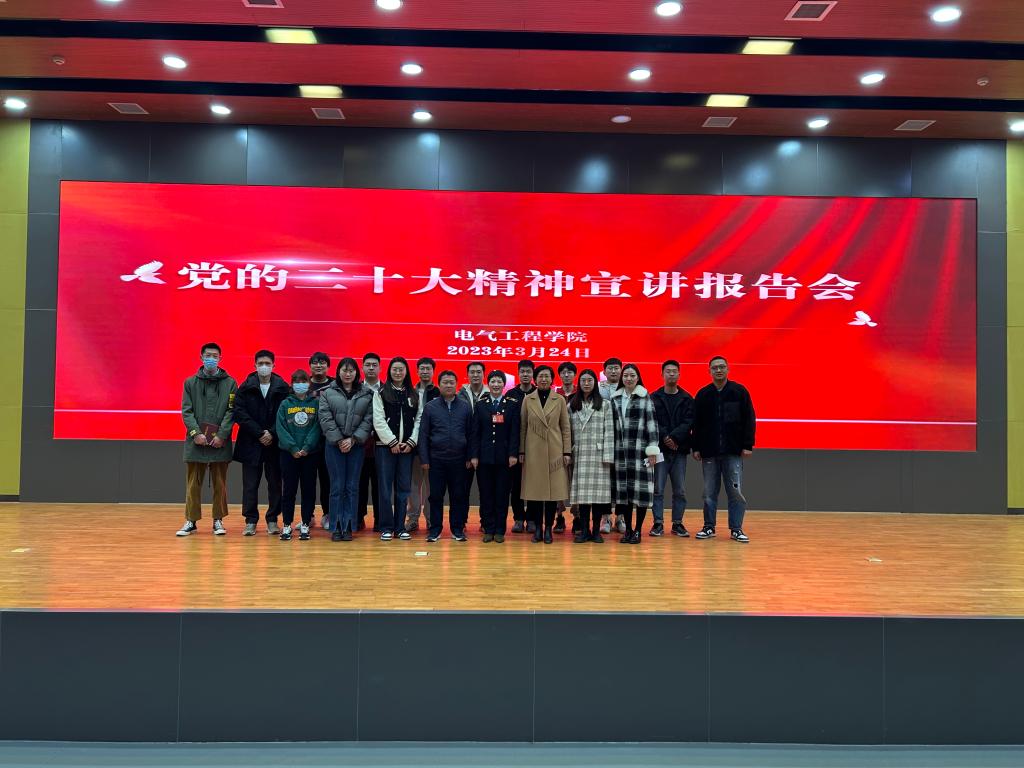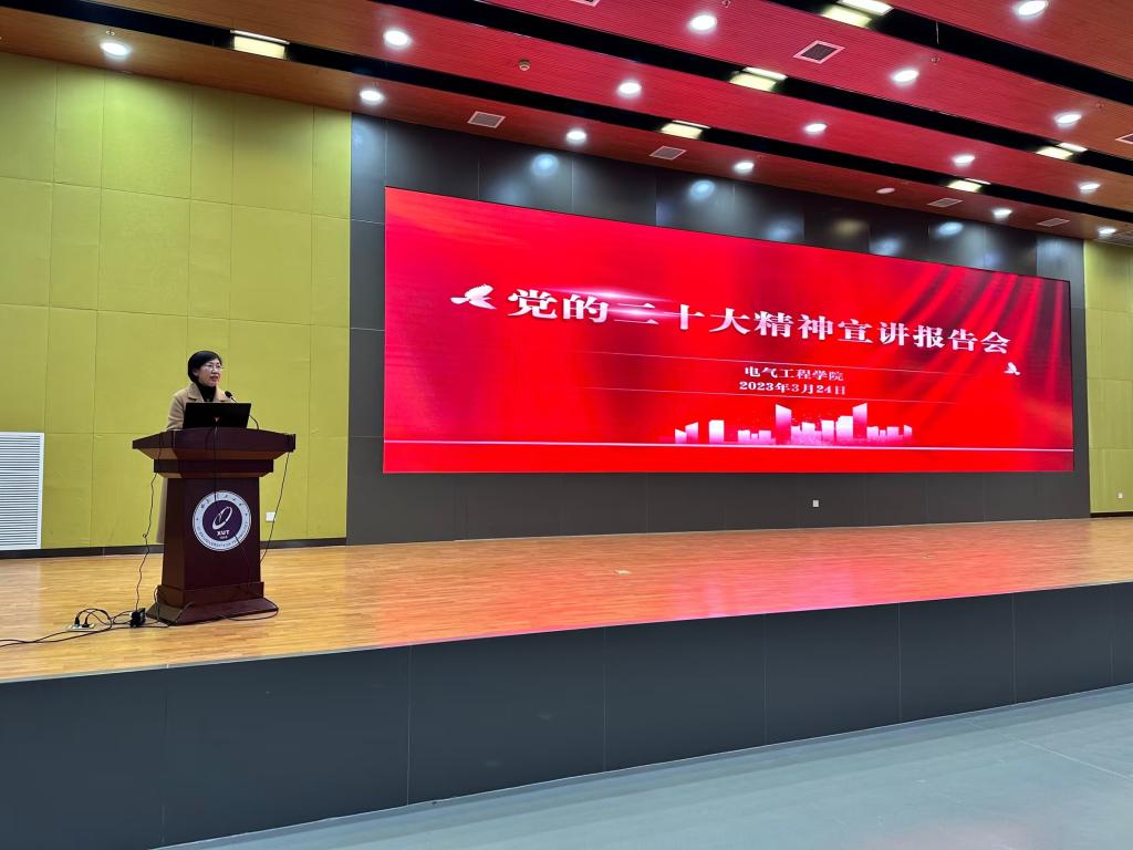 电气工程学院党委书记李虹出席报告会并在会前与法晓芳代表亲切交流。电气工程学院全体辅导员、学生党员、入党积极分子共计400余人参加报告会。