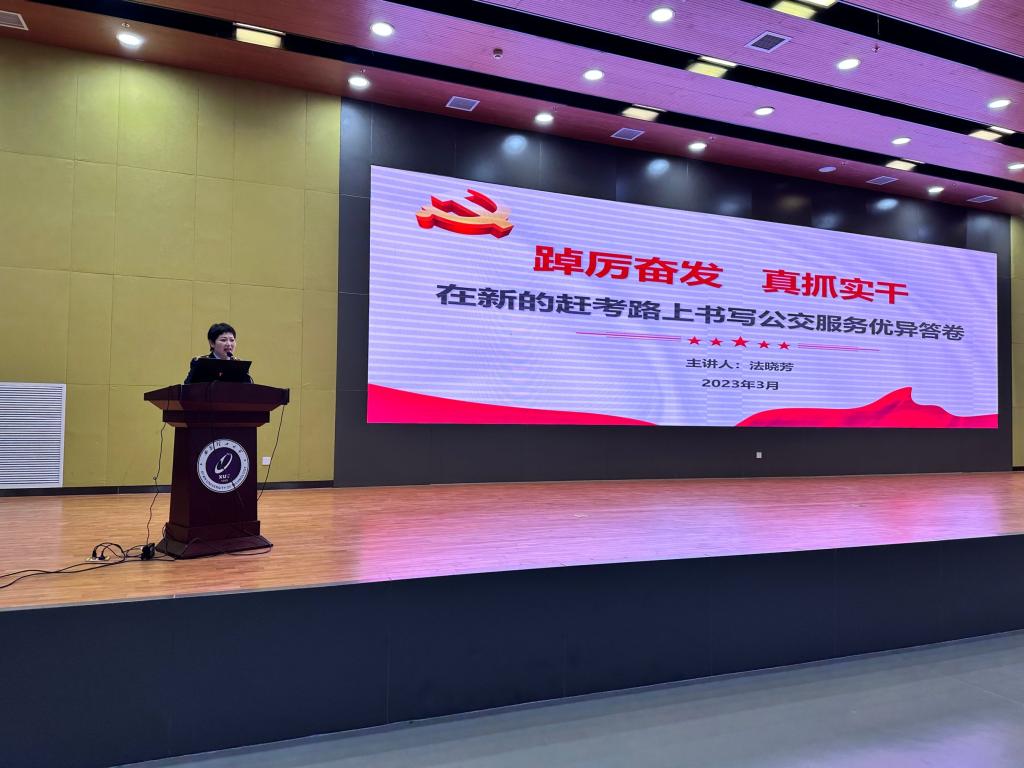 为深入学习宣传贯彻党的二十大精神,电气工程学院特邀西安市公共交通集团有限公司第三分公司10路公交车驾驶员,“全国五一巾帼标兵”、“全国爱岗敬业驾驶员楷模”,党的二十大代表法晓芳来院作党的二十大精神宣讲报告。报告会由电气工程学院党委副书记何海生主持。