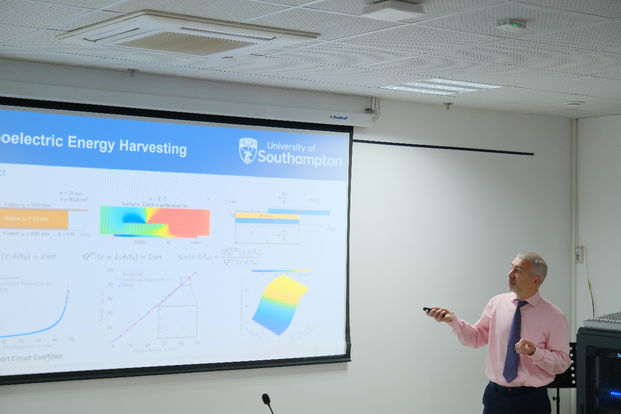 会议期间,Daniil Yurchenko教授作了题为“Optimization methodology for Triboelectric energy harvesting devices”的学术报告,对提高采集摩擦电能的优化方法进行了讲述。张斌副教授作了题为“振动发电系统非线性建模与电路设计”的报告,向大家介绍了振动发电电路设计中的一些关键问题和解决方法。会议期间,与会师生与两位教授就相关专业问题进行了深入交流,并集体合影留念。会议结束后,张嘉伟教授陪同专家参观了相关实验室并进行交流。