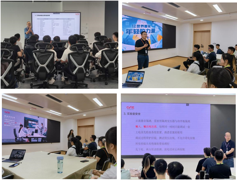 实习期间的日程安排非常紧密和充实,除了产品的研制外,还安排了多场技术培训,内容涉及从安全教育到职场培训,从硬件基础到调试方法等。此外,企业的专家结合目前的研发方向和研究成果,对电力电子行业最新的光伏发电与电力电子变换器、工商业储能技术等行业热点前沿技术作了报告。