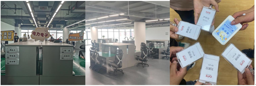 与此同时,为了更好的增加实习参与度和强化团队意识,企业工作人员专门提前为实习布置了研发调试工作台,为每位学生和带队教师定制工牌等环境条件。