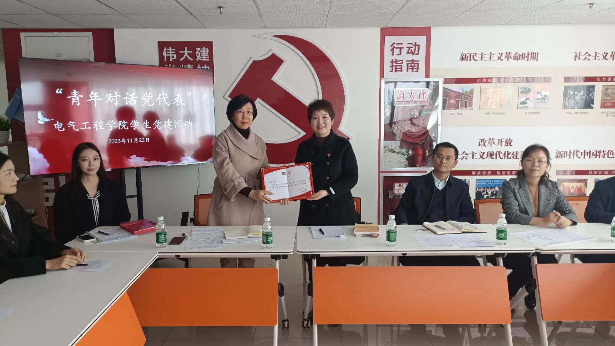 李虹介绍了电气工程学院党建基本情况,并为法晓芳颁发“党建指导员”聘书。