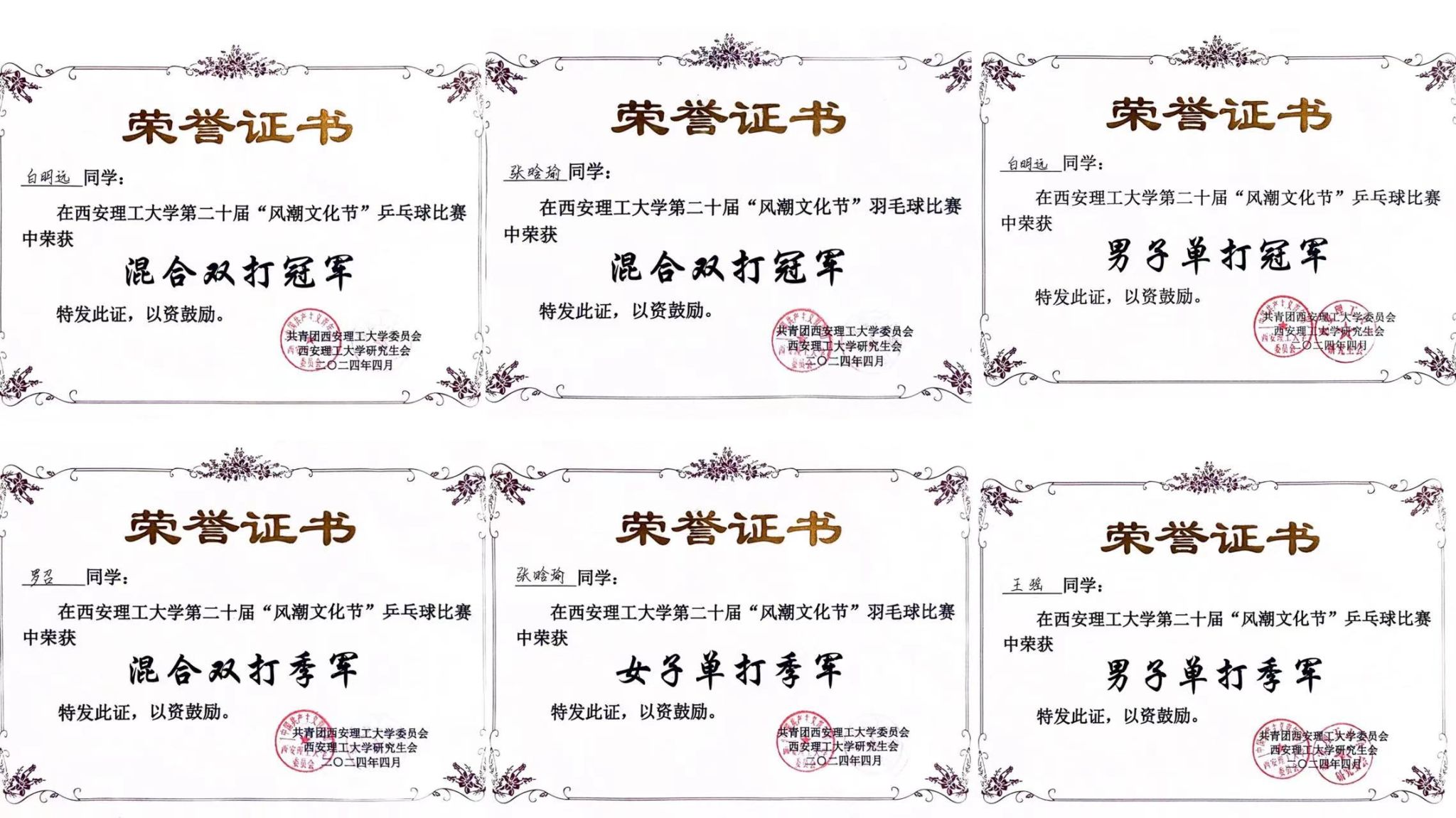 乒乓球比赛中,学院队员顽强拼搏,一招一式,球不落地绝不放弃,不但赢得了比赛还获得了观众的欢呼。最终,来自研2250班的白明远取得男子单打冠军,他还联合兄弟学院同学获得混双冠军。同时,研2248班的王瑶获得男子单打季军,研231904班罗召获得混双季军。