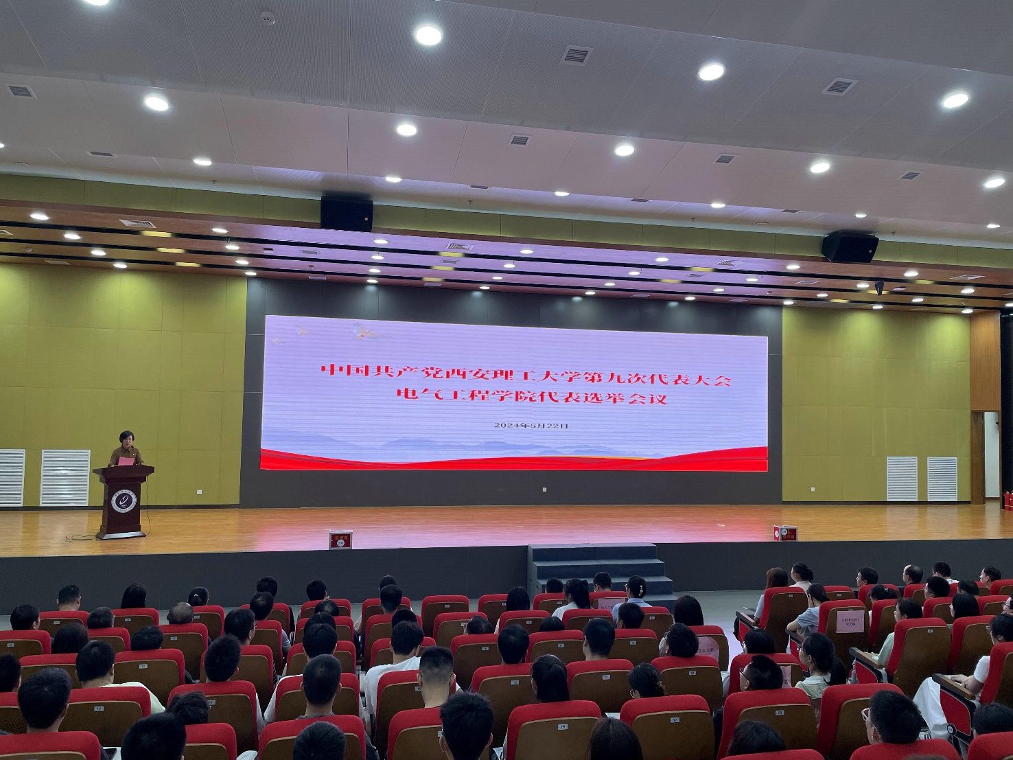 按照校党委《关于中国共产党西安理工大学第九次代表大会代表选举工作的通知》(西安理工党发〔2024〕20 号)要求,电气工程学院党委5月22日在曲江校区图书馆报告厅召开党员大会,选举产生出席中国共产党西安理工大学第九次代表大会的学院党员代表。大会由院党委书记李虹主持。
