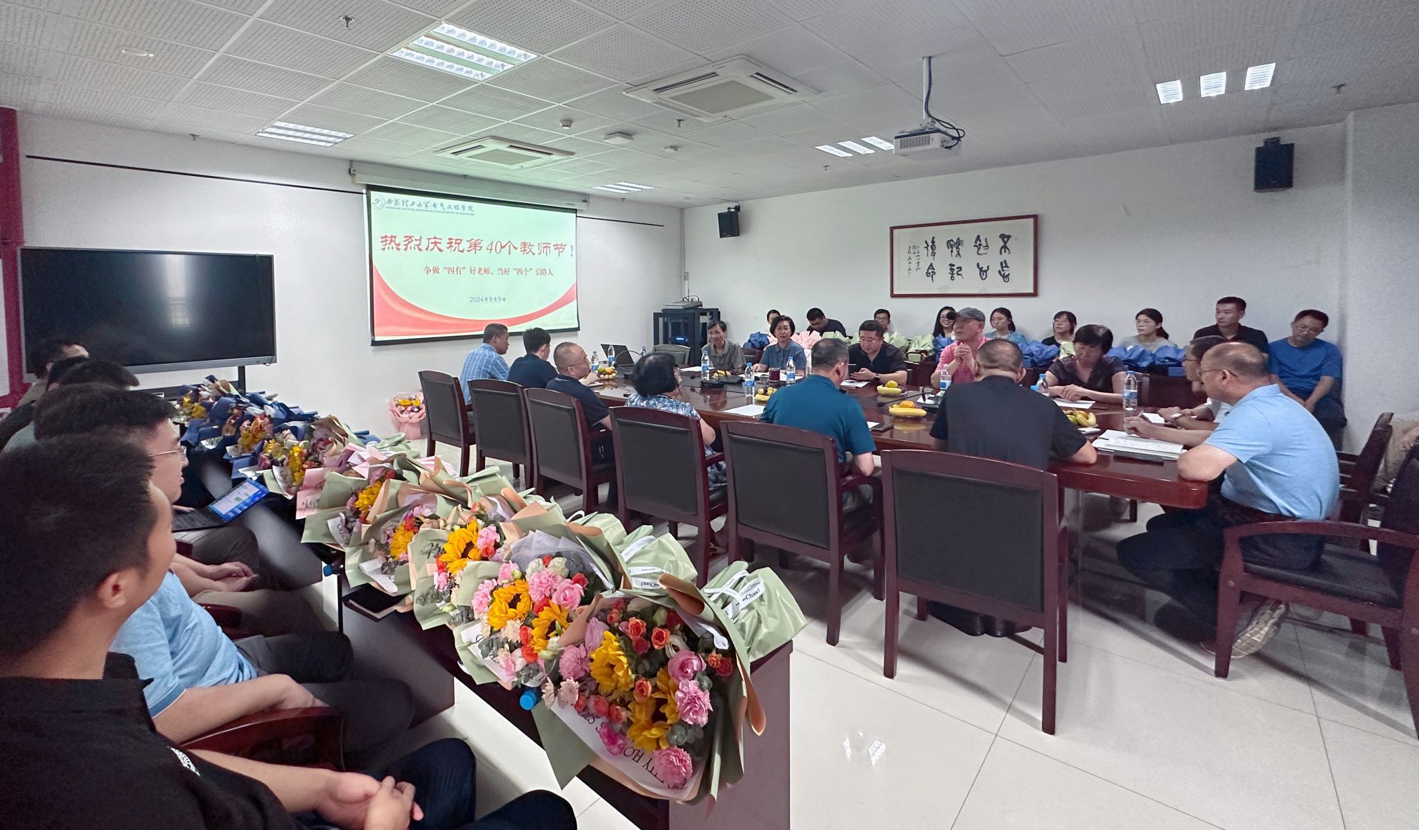 会上,学院班子为退休教师、专家以及青年教师代表赠送了鲜花,并为各位老师送去了教师节的祝福,与会教师在温馨融洽的节日气氛中合影留念。