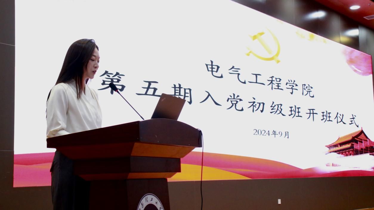 刘晨雪介绍了本次培训的安排和要求,包括培训时间、培训主题、培训纪律和考核方式等,希望同学们认真学习党的基本知识和理论,不断提升自己的政治素质和理论修养。电气类246班雍可涵同学代表本期学员发言,表达了参加入党初级班培训和态度和决心,在发言中她表示将认真参加本次学习,不断提高政治素养,主动投身于理论知识学习和社会实践,争取早日成为一名合格党员。