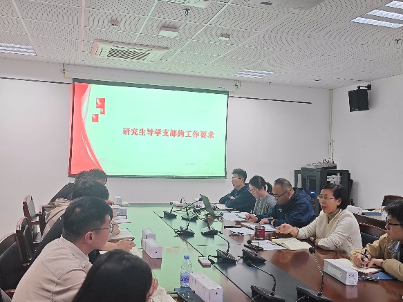 李虹对研究生导学支部的建设提出工作要求,并强调党支部书记在思想引领和组织建设方面发挥的重要作用;号召各支部要在科学研究、社会服务、教学工作和文化传承中加强引领力度,以更好地服务于学院的发展和学生的成长。会后,李虹为全体学生支部书记和委员发放保温杯和笔记本,以资鼓励。