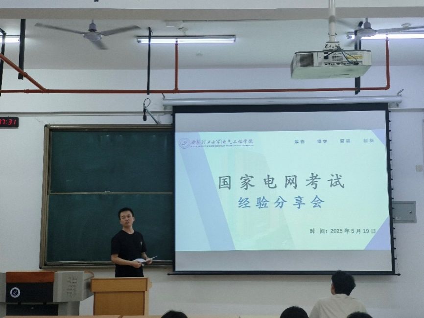 为助力参加国家电网招聘考试的同学们精准把握备考方向与核心要点,5月19日下午四点,我院学工办联合院研究生会于综北楼406开展“‘电’亮未来·智汇征程”国网考试经验分享会。活动特邀2025届硕士毕业生王梓伦与本科毕业生高东晋担任主讲,为同学们进行备考经验和学习方法的分享。