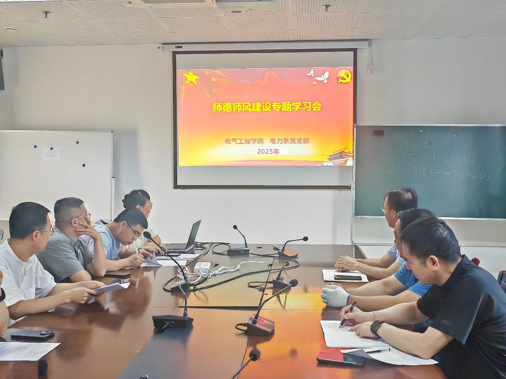 为深入贯彻中央八项规定精神学习教育,强化教师师德师风建设,6月16日下午,电力工程系党支部组织全系教师召开师德师风建设专题学习会。通过理论学习、案例警示、交流研讨的形式展开学习与讨论,引导全系教师筑牢师德师风防线。支部书记王开艳传达了学校和学院师德师风教育学习安排,带领大家学习了“树立报国之志 锐意创新进取——习近平总书记致复旦大学的贺信激发挺膺担当的奋进力量”、“习近平对精神文明建设工作作出重要指示”、《关于健全新时代师德师风建设长效机制的意见》摘选、《关于深化新时代学校党建高质量发展的实施意见》等内容。通过理论学习,大家进一步明确了新时代师德师风的努力方向,将师德要求内化于心、外化于行,融入课堂教学、科研攻关、学生培养全过程。