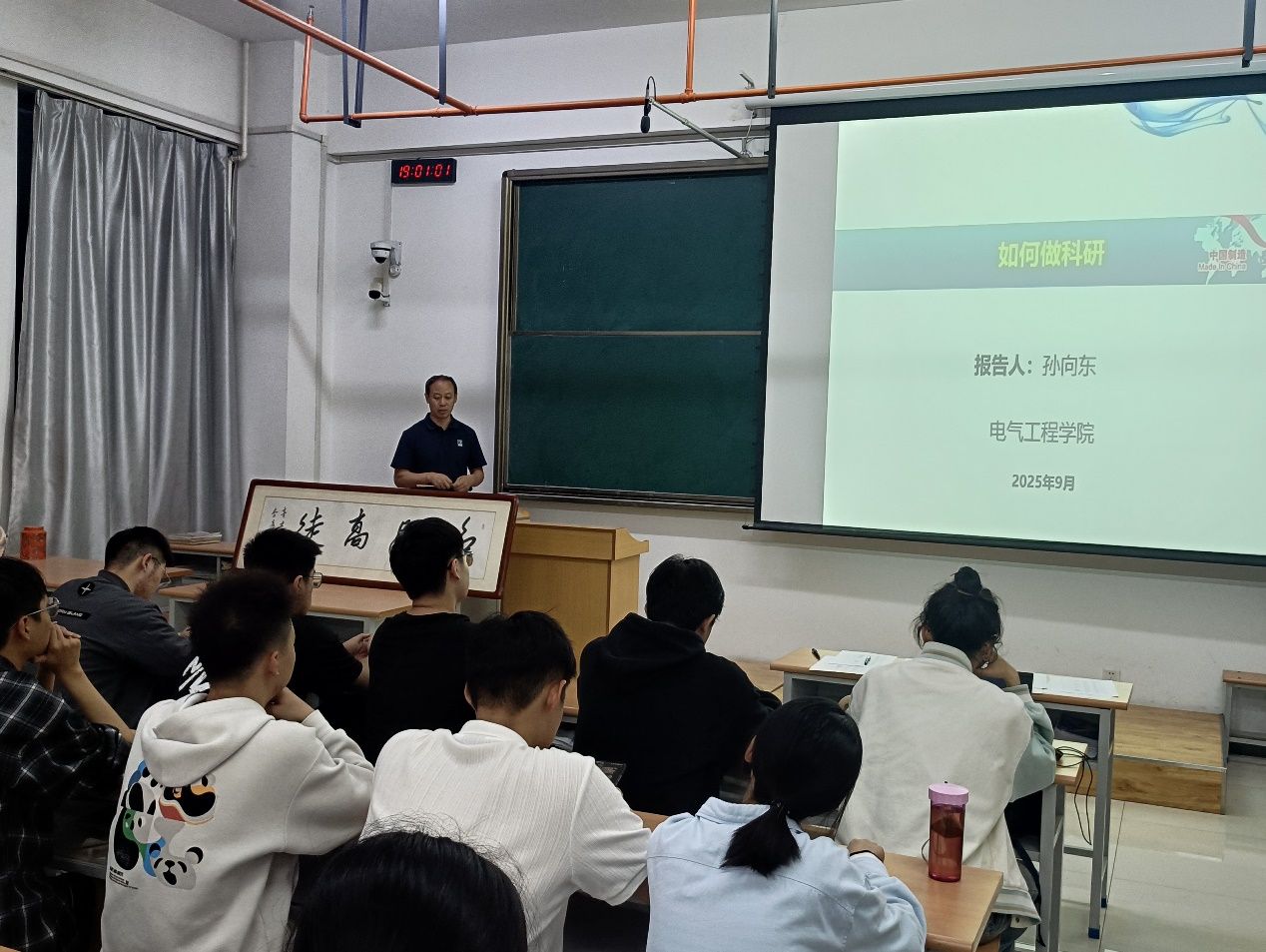 新学期伊始,为提升学院新入学研究生科研能力,拓展学术视野,9月17日,电气工程学院于综北306举办第36期“禾望电气·名师高徒”学术讲座。本次讲座特别邀请电气工程学院孙向东教授担任主讲嘉宾,学院2025级研究生、研究生党员、研究生会代表参加讲座。