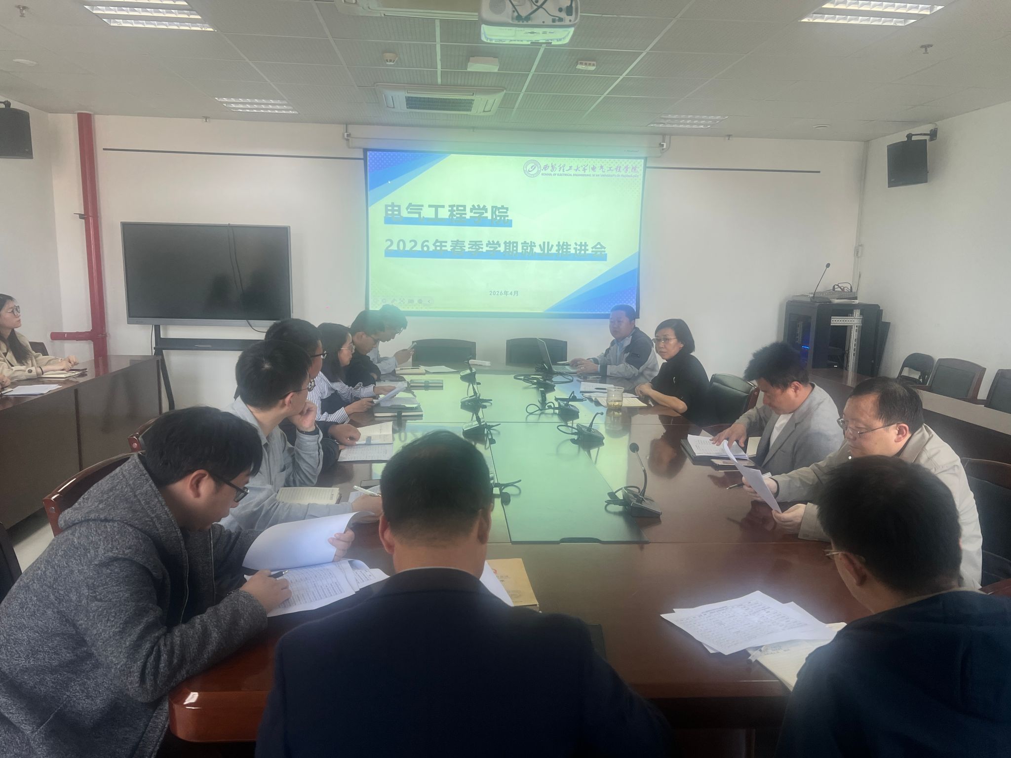 为贯彻落实学校2026年春季学期毕业生就业工作领导小组(扩大)会议精神,推进毕业生多维度、高质量就业,4月1日我院召开2026届毕业生春季促就业推进,部署春季促就业专项行动。学院党委书记李虹、副书记何海生,系所主任、毕业班导师、辅导员参会。