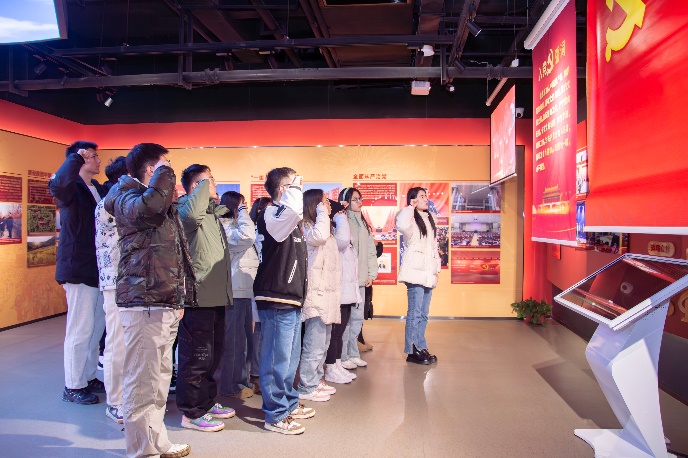 活动伊始,全体党员在解说员的带领下,参观了党的百年奋进之路展览。一幅幅珍贵的历史照片、一件件饱含深情的革命文物,生动再现了中国共产党从成立之初的艰难困苦到如今的辉煌成就。随后,全体党员在鲜红的党旗下,重温入党誓词,举起右拳,面对党旗,庄严宣誓,誓言铿锵有力,响彻整个实践基地。这一刻,党员们的心灵得到了洗礼,党性得到了升华。紧接着,党员们齐声高唱经典红歌《没有共产党就没有新中国》,用激昂的歌声表达了对党和祖国的热爱之情。活动最后,三个支部围绕自己支部的特色以及开展活动情况进行了交流学习。
